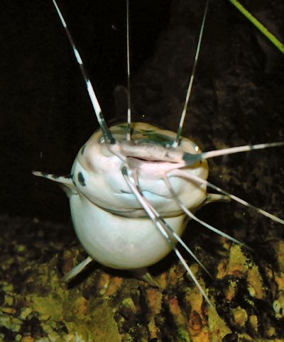Their original homeland lies in tropical Asia, where they are common in rivers and pools. However they increase strongly also in some parts of Florida. There it was easy for them to escape from the fish ponds, in which they originally had been inserted, into closed waters, with the consequence that they also did damage to the fauna there. This circumstance surely also contributed to the negative image of the species. Though you can see differences by looking in front of Clarias batrachus - the female altogether looks more imposing and stronger (see pictures below), the only safe sex specific distinguisher, anyhow with the albino and semialbino animals which we usually can buy and which are substantially more remarkable in contrast to the inconspicuous wild colour, is the form of the genital papilla. With the female it is thick set, short and blunt, with the male being elongate and pointed at the end.