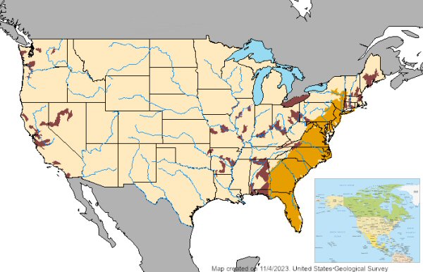 encompasses Atlantic and Gulf slopes of North America,
