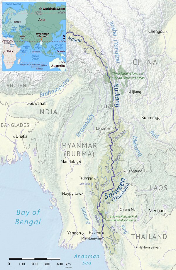 Salween and Sitting river drainages: Myanmar and Thailand.