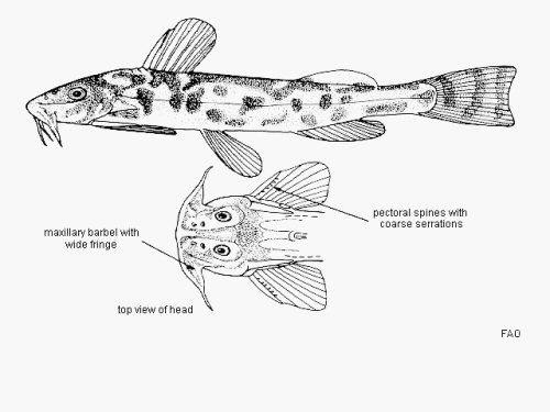 Zaireichthys rotundiceps = Line drawing-lateral and dorsal head view