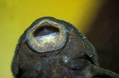 Parancistrus aurantiacus = Normal aquarium colouration showing mouth